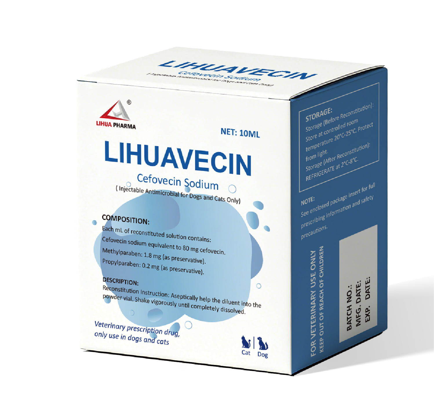 Take one vial of this product and dissolve it in 10 mL of water for injection. Subcutaneous Injection: For dogs and cats, administer 8 mg per kg of body weight (calculated as cefovecin, equivalent to an injection volume of 0.1 mL per kg of body weight). The therapeutic effect may persist for up to 14 days. If the therapeutic response in dogs is incomplete, a second subcutaneous injection may be administered; however, the total number of injections should not exceed two.