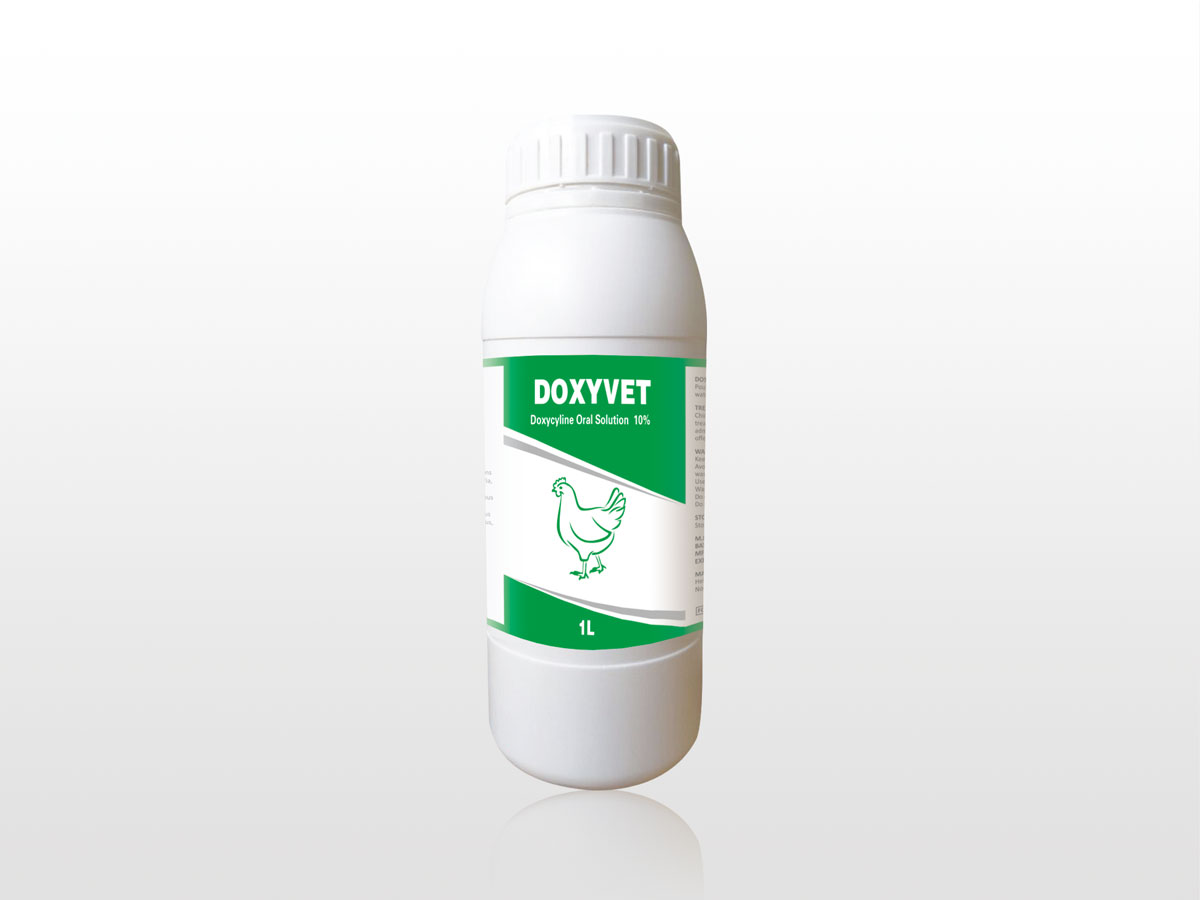Doxycycline belongs to the group of tetracycline and acts bacteriostatic against many Gram-positive and Gran-negative bacteria like Bordetella, Campylobacter, E.coli, Haemophilus, Pasteurella, Salmonella, Staphylococcus and Streptococcus spp. Doxycycline is also active against Chlamydia, Mycoplasma and Rickettsia spp. The action of doxycycline is based on inhibition of bacterial protein synthesis. Doxycycline has a great affinity to the lungs and is therefore especially useful for treatment of bacterial respiratory infections.